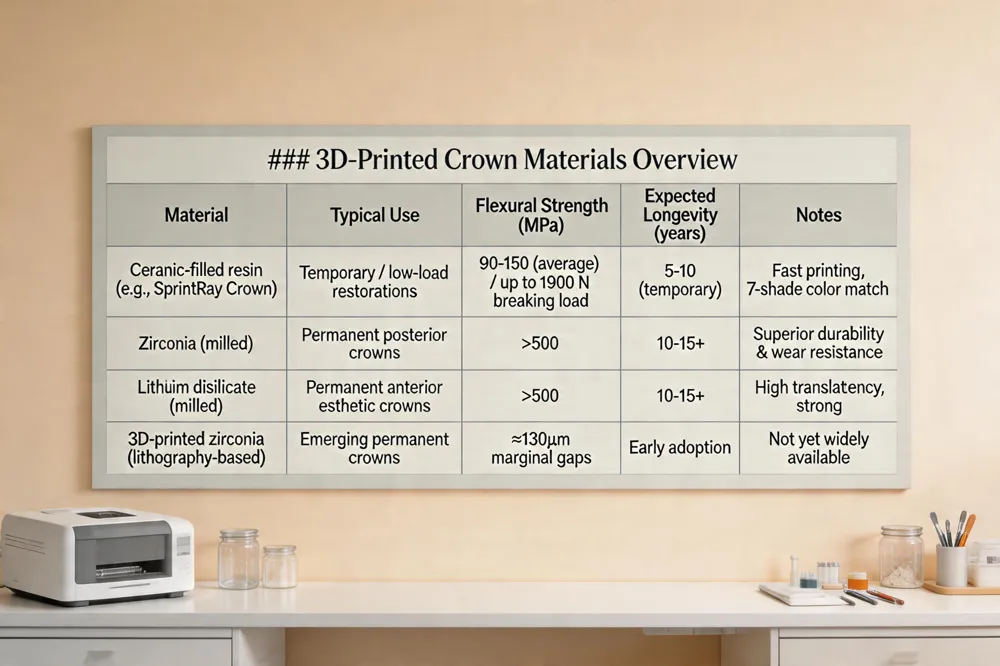 3D‑Printed Crown Materials Overview