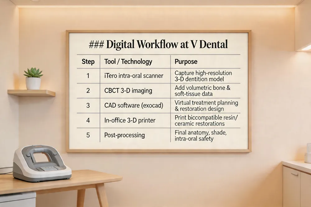 Digital dentistry articles – V Dental’s blog regularly publishes articles that explore the latest developments in digital dentistry, covering CBCT imaging, iTero scanning, CAD‑CAM, 3‑D printing, and AI‑driven analysis, all written in plain language for patients.