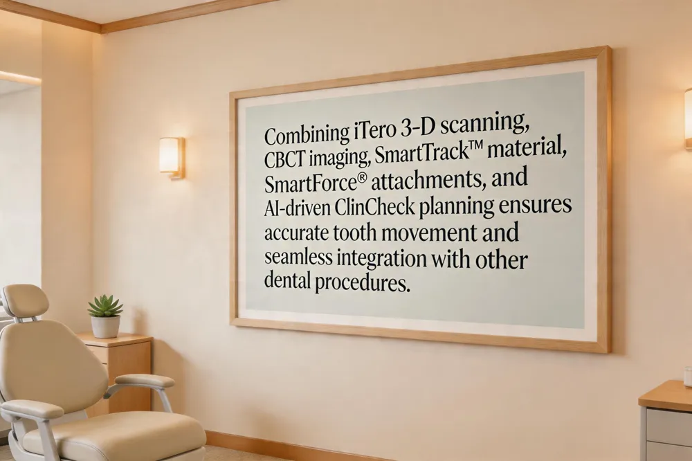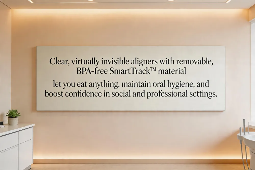 Invisalign’s BPA‑free SmartTrack™ material delivers continuous, gentle force. SmartForce® attachments add targeted pressure, allowing complex rotations and bite corrections while keeping the trays comfortable and virtually invisible.