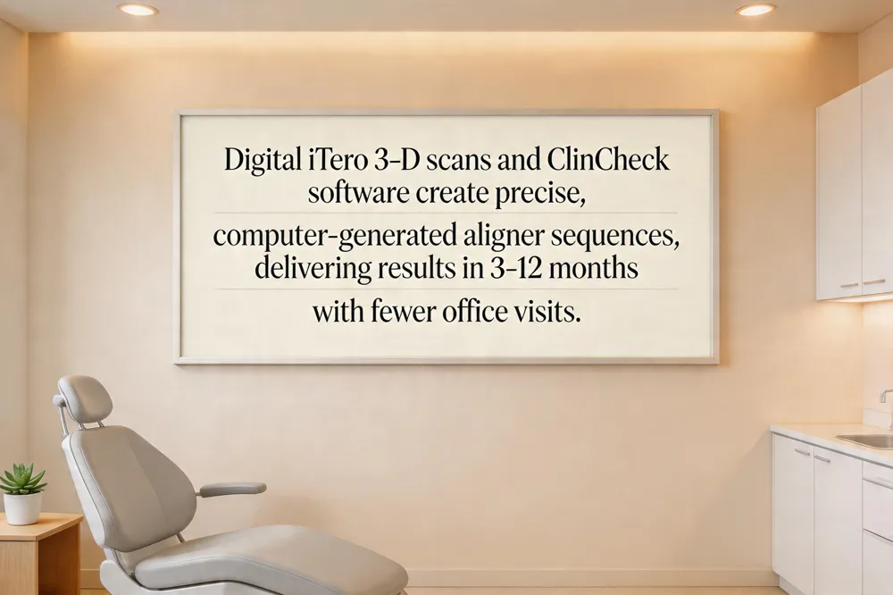 ClinCheck visualizes the entire treatment sequence before the first tray is made. AI algorithms refine the plan in real‑time, giving patients a clear preview of their future smile and enabling the orthodontist to adjust movements for optimal efficiency.
