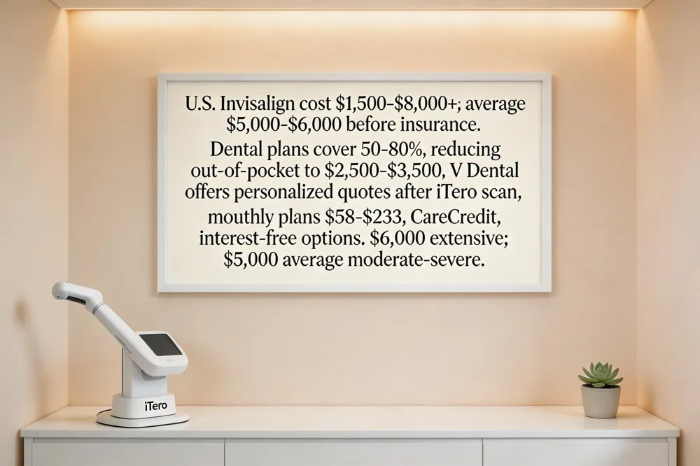 Invisalign cost – Determined by aligner count, treatment length, and case difficulty; V Dental provides a tailored estimate and payment plans to fit each budget.