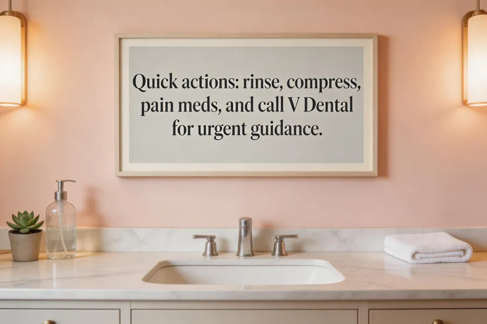 When to seek urgent professional care – If bleeding is profuse, swelling spreads, a tooth is missing, or pain persists beyond 24 hours, locate the nearest emergency dentist or hospital. Contact V Dental (or your regular dentist) for a same‑day tele‑consultation or referral to a trusted local provider.