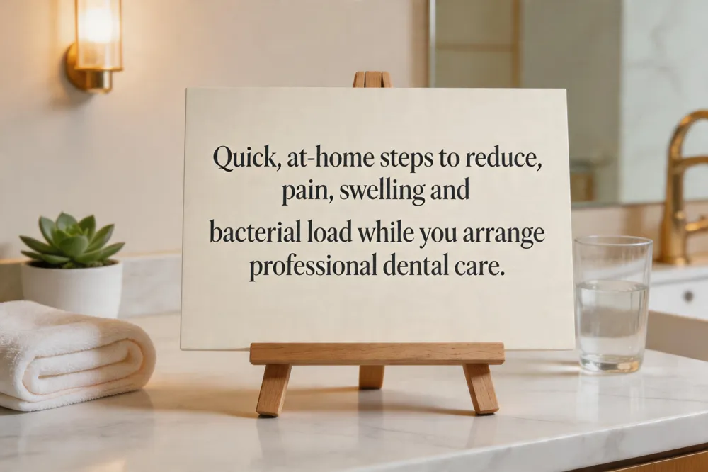 Warm Salt‑Water Rinses – Mix ½ tsp salt in an 8‑oz cup of warm water and swish gently for 30 seconds, 2–3 times daily. This helps reduce swelling, cleans bacteria, and can draw out pus while you arrange a dental visit.